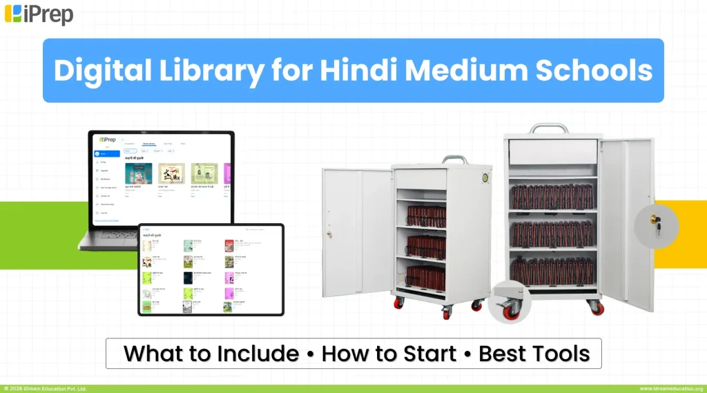 One of the best comprehensive solutions is the iPrep Digital Library designed specifically for Hindi Medium Schools